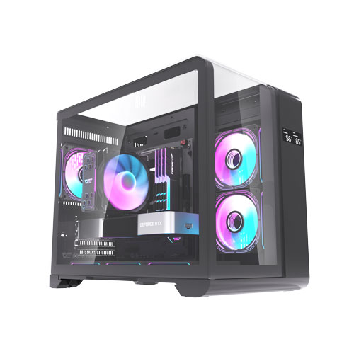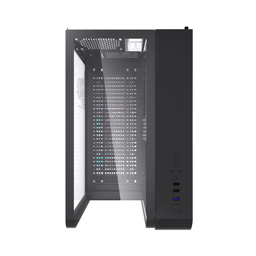 Vỏ case được cấu tạo từ kim loại chắc chắn, đi cùng mặt bên là kính cường lực trong suốt giúp phô diễn toàn bộ linh kiện bên trong. Kích thước tổng thể 443 x 280 x 440mm mang lại không gian thoải mái để build cấu hình cao cấp, đồng thời vẫn giữ được sự gọn gàng, tinh tế trên bàn làm việc hoặc trong không gian gaming chuyên nghiệp.