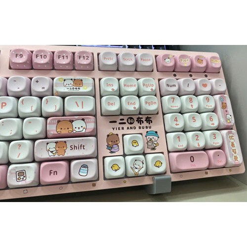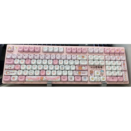 Phiên bản Yier & Bubu Pink gây ấn tượng với tông màu hồng pastel nhẹ nhàng kết hợp họa tiết đáng yêu. Keycap được in họa tiết sắc nét, mang lại cảm giác sinh động và đồng bộ tổng thể.