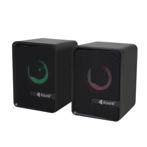 Loa Kisonli L-4040 là dòng loa vi tính 2.0 giá rẻ, được ưa chuộng nhờ thiết kế nhỏ gọn và hệ thống đèn LED đổi màu bắt mắt, phù hợp để trang trí bàn làm việc hoặc góc học tập.