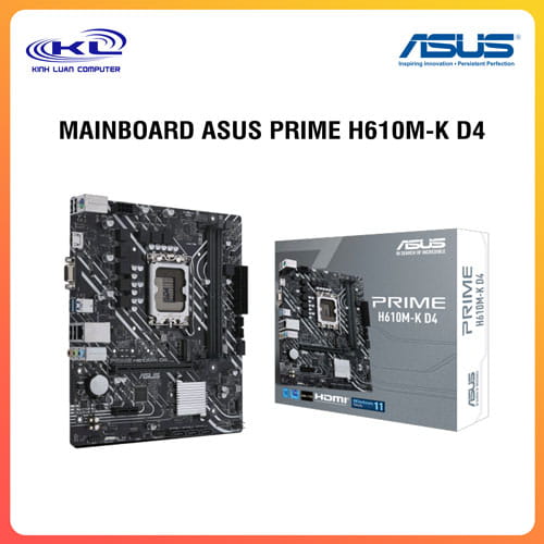 ASUS Prime H610M-K D4 là dòng bo mạch chủ phổ thông sử dụng chipset Intel H610 và socket LGA1700, hỗ trợ các bộ vi xử lý Intel Core thế hệ 12, 13 và 14. Với kích thước micro-ATX nhỏ gọn và hỗ trợ bộ nhớ DDR4, đây là lựa chọn tối ưu cho các cấu hình PC văn phòng hoặc giải trí cơ bản có ngân sách tiết kiệm.